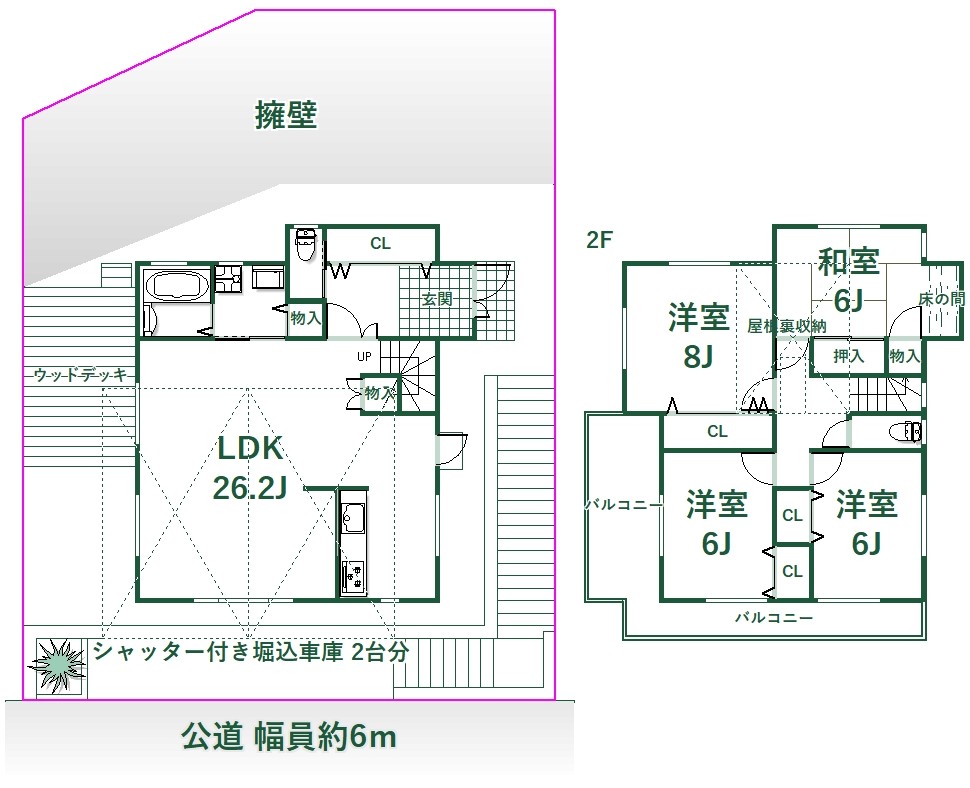 □堀込車庫寸法:約W3200・D6000・H2200×2台分