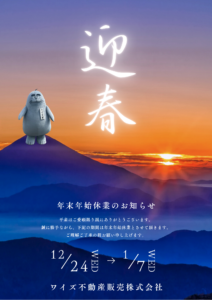 冬季休暇のお知らせ 2025年12月24日(水)~2026年1月7日(水) 日頃より弊社をご愛顧いただき、 誠にありがとうございます。 誠に勝手ながら、 下記の期間を冬季休業とさせて頂きます。 休業期間:2025年12月24日(水) ~ 2026年1月7日(水)